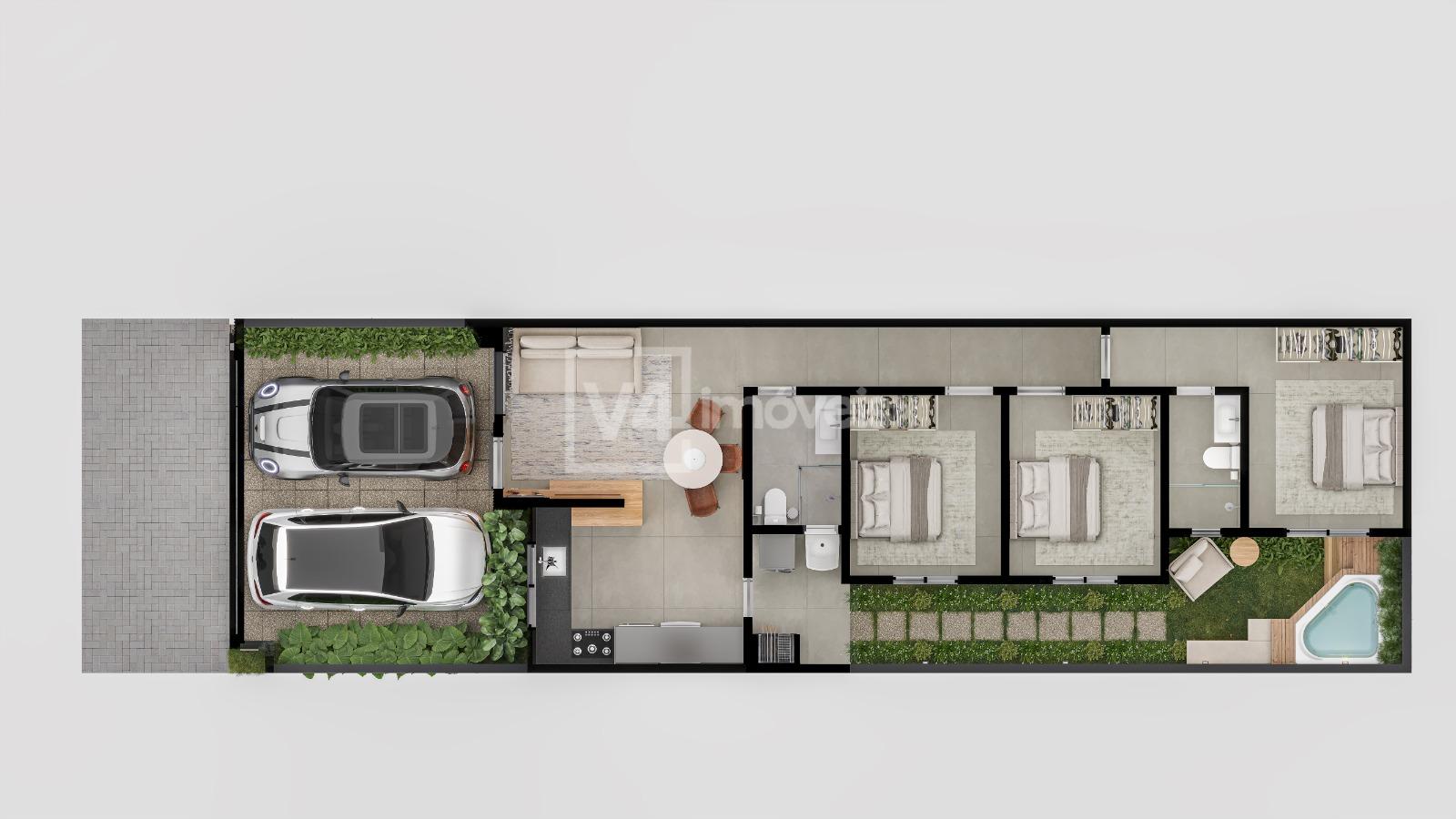 Casa no Tropical IV - 1 suite e 2 quartos, ambientes integrados, com sala de estar, jantar e cozinha, lavanderia, Banheira externa de hidromassagem com aquecimento, deck, churrasqueira.